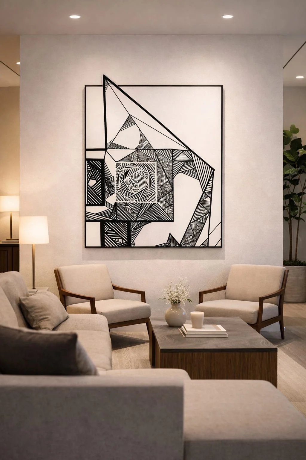 Enter a space devoted to visual exploration, where each work emerges from the dialogue between order, tension, and balance. This site presents a curated selection of geometric compositions in which lines and structures evolve into visual expressions of clarity, precision, and presence. Here, my work unfolds as an ongoing pursuit of harmony between strength, silence, and spatial awareness.